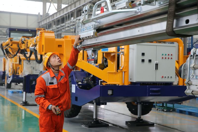 11月12日,在中铁工程装备集团隧道设备制造有限公司郑州总装基地,工作人员正在组装、调试设备。