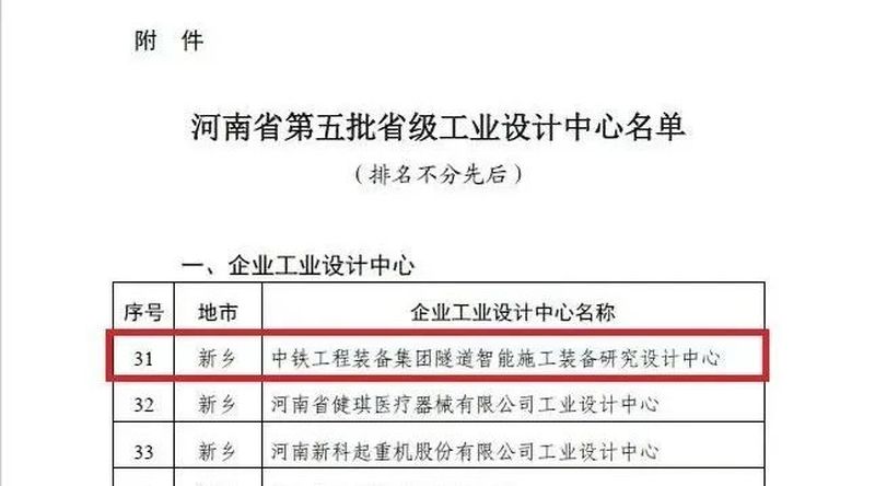 近日,河南省工业和信息化厅正式发布“河南省第五批省级工业设计中心”名单。中铁装备集团设备公司“隧道智能施工装备研究设计中心”通过认定,顺利入选,成为河南省工业设计中心!